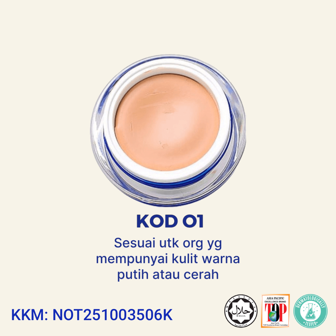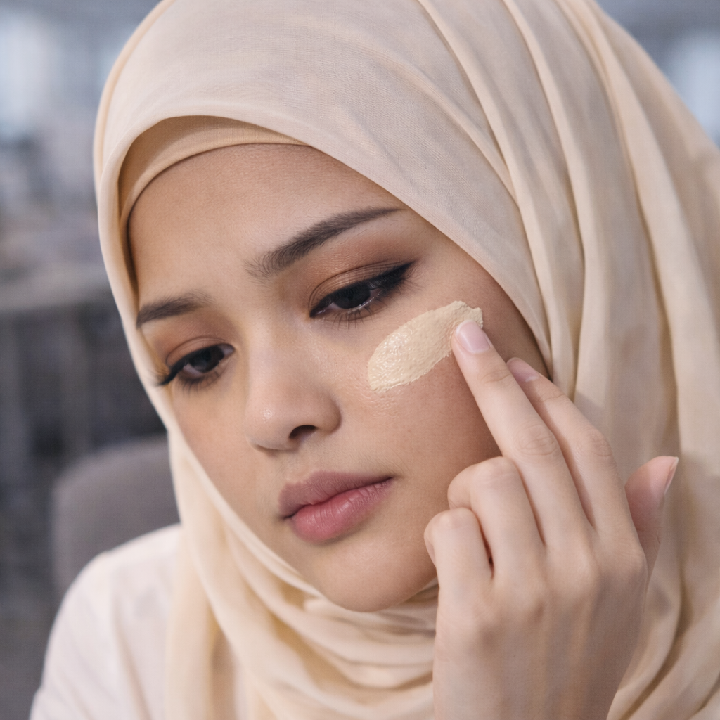 Foundation krim ini boleh disapu terus guna jari. Teksturnya mudah diratakan dan sesuai untuk kegunaan harian — fokus pada nampak kemas, bukan makeup berat.